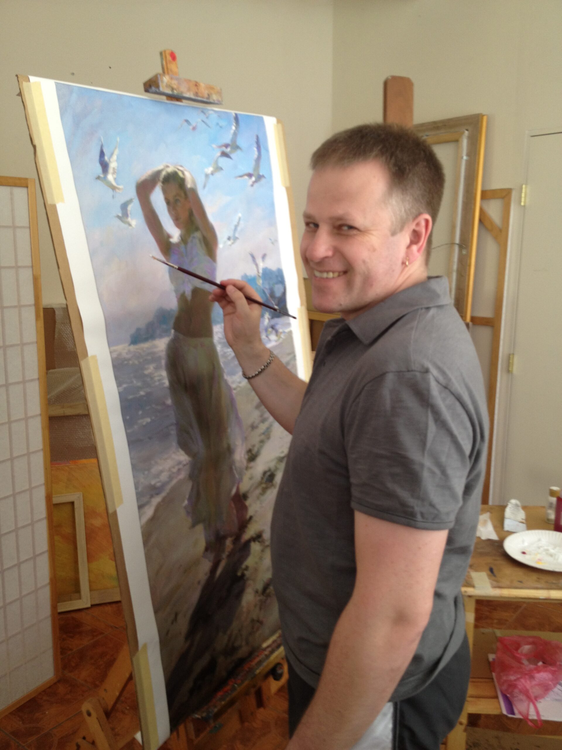 Michael Hand-embellishing for Amour d’Art, Giclee on Canvas